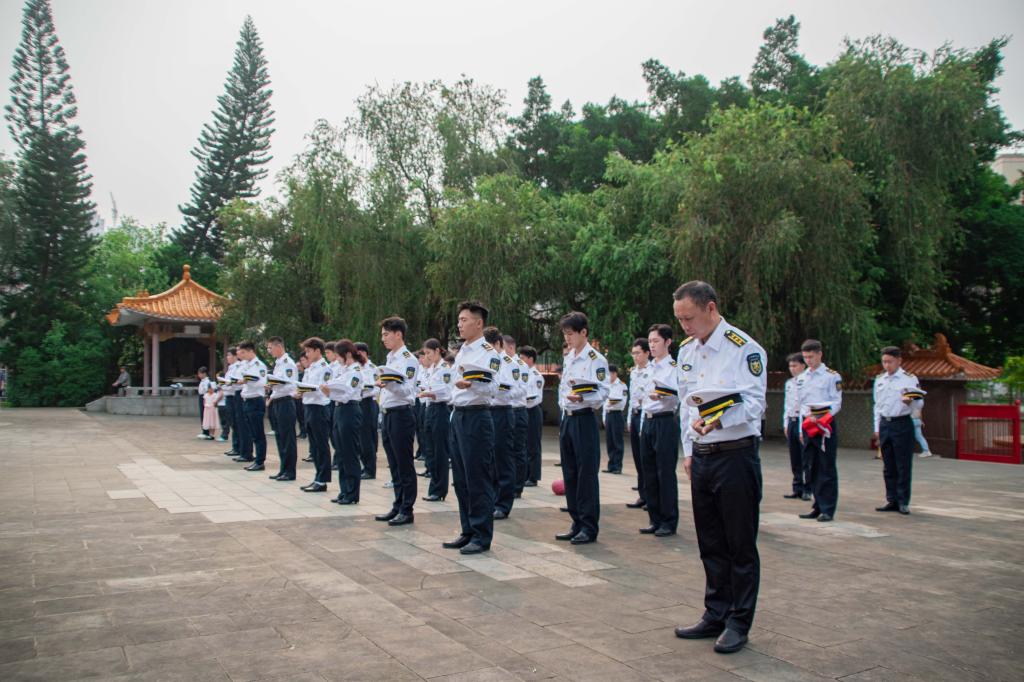 2021级航海中队学生代表步行前往菉塘村革命烈士陵园开展“缅怀革命先烈,传承红色基因”清明祭英烈活动。本次活动由学院牵头,航海1212班组织。教师代表付昭斌以及40余名学生代表参加本次活动。