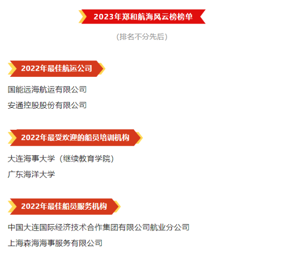 在7月11日晚揭晓的郑和航海风云榜揭榜典礼上,相继揭晓了2022年最佳船员服务机构、最受欢迎的船员培训机构、 最受欢迎的船舶管理公司、最佳港埠企业(集装箱)、最佳基层海事机构、最佳基层海事机构、十佳船舶、最佳航运公司、杰出海员、创新探索先锋、领航人物等11大奖,共有71家机构、人物、事件荣誉上榜。我校获得2022年最受欢迎的船员培训机构荣誉,番茄社区