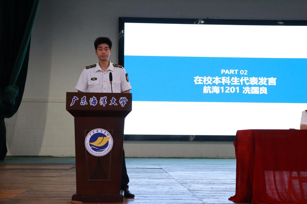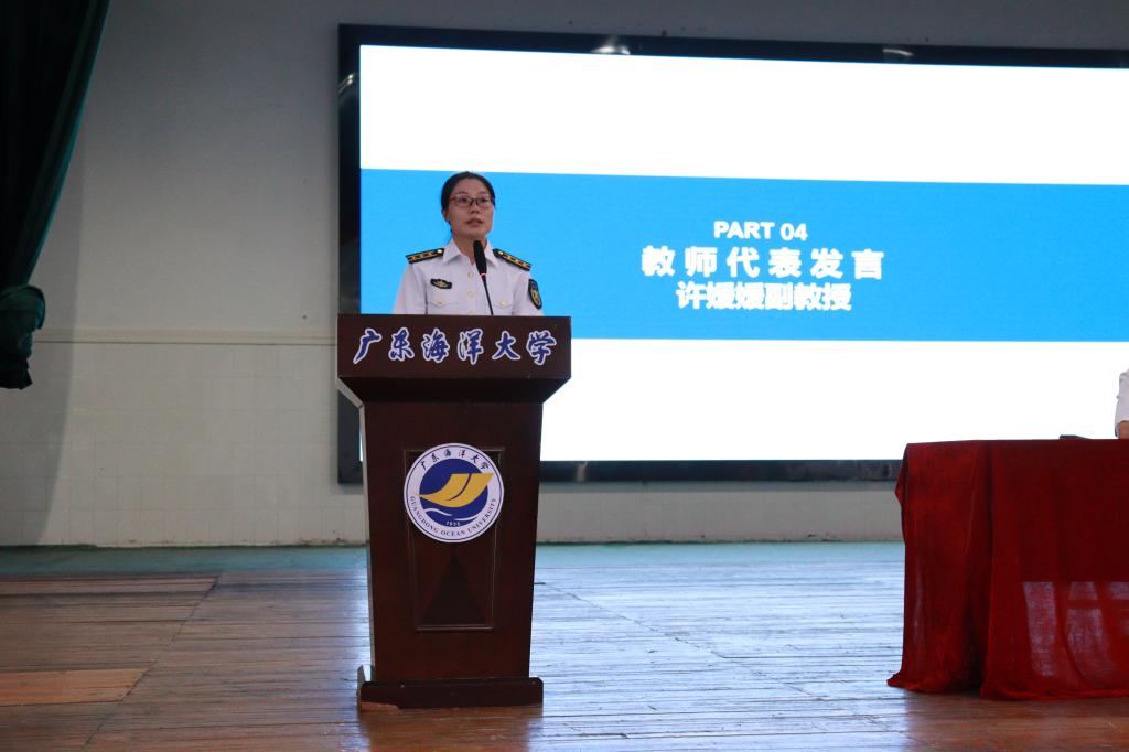 随后,教师代表许媛媛发言,她希望同学们树立远大的人生理想,学海爱海,主动担负起“海洋强国”“交通强国”国家重大战略部署的责任,并提醒同学们要珍惜在番茄社区