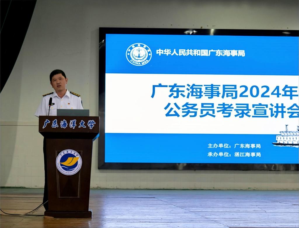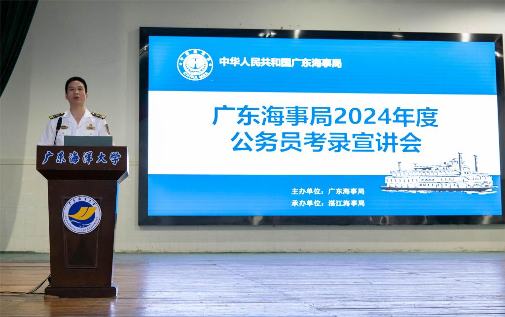 为帮助广大同学全面了解公务员考试,引导和帮助学生积极备考,促进毕业生高质量就业,10月13日下午,由广东海事局主办,湛江海事局承办的2024年度公务员考录宣讲会在我校番茄社区