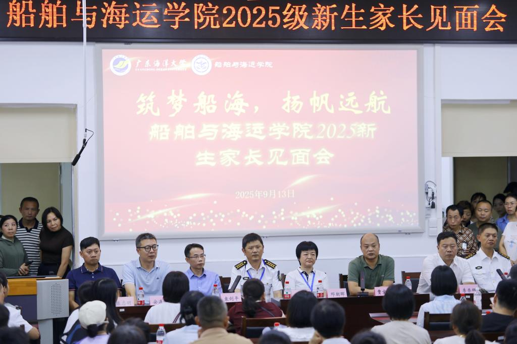在海滨校区经海楼1号会议室举办2025新生家长见面会。学院党委书记邓朝晖,院长贾宝柱,正处级辅导员、党委副书记齐昊,副院长李荣辉,副院长袁剑平以及实验训练中心、船员培训中心、各系主任及140余名新生家长参加会议。