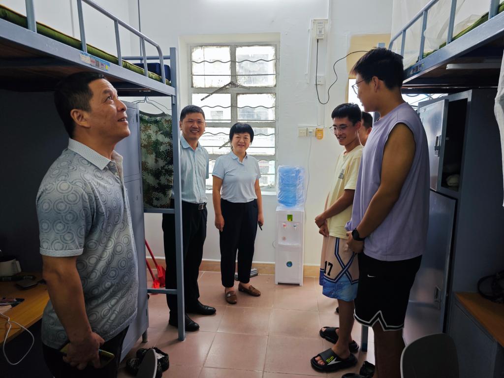 为全力迎战今年第18号台风“桦加沙”,确保在校学生生命财产安全,9月24日上午,学院党委书记邓朝晖,正处级辅导员、党委副书记齐昊带领学工半军管全体人员深入学生宿舍,开展台风防御安全检查与宣传教育工作。