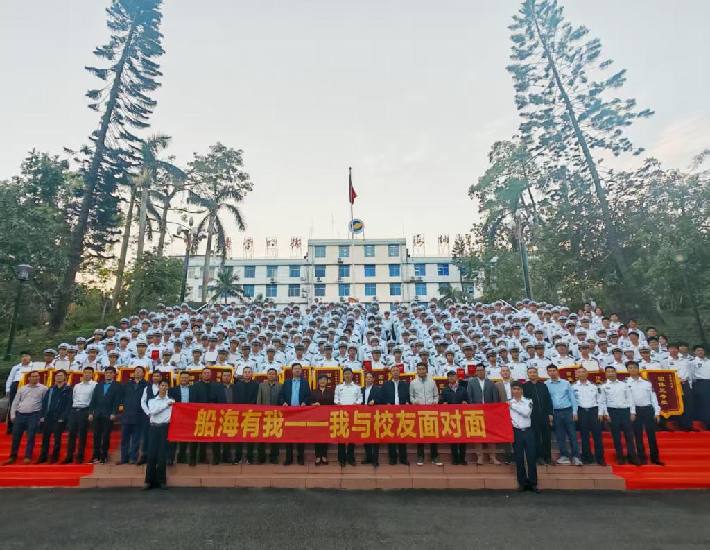 在海滨校区举办了“船海有我-我与校友面对面”暨半军管成果展示活动。学院领导邓朝晖、齐昊、李荣辉、袁剑平,湛江海事局人事教育处处长刘志国、科技信息处处长张计划、遂溪海事处处长邓平贵、行政服务中心副主任董少峰,渤海轮渡集团党群工作中心主任郝长伟,北部湾大学后勤保障处副处长董海亮,南海救助局湛江救助基地办公室主任牛念喜,南京西普德船舶设计有限公司董事长王东兴,南京工程学院教授许江涛等校友及2025级航海类专业全体学生共500余人齐聚一堂,共庆盛典。活动由齐昊主持。