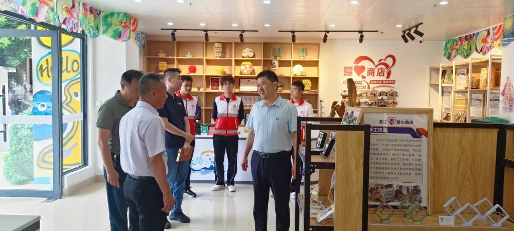 爱心商店,李渊介绍了爱心商店的基本情况并对船海学院的大力支持表示感谢。随后,双方就进一步加强院校合作与交流、拓宽大学生志愿者服务渠道等进行了深入的交流探讨,并参观了校园。