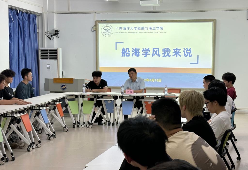 学风建设要求,持续优化学风建设长效机制,扎实推进学院学风建设,4月15日晚,船舶与海运学院举办“船海学风我来说”主题座谈会。本次座谈会由学院正处级辅导员、党委副书记齐昊主持,辅导员张佳宁、陈方园以及40余名学业困难学生代表参加会议。