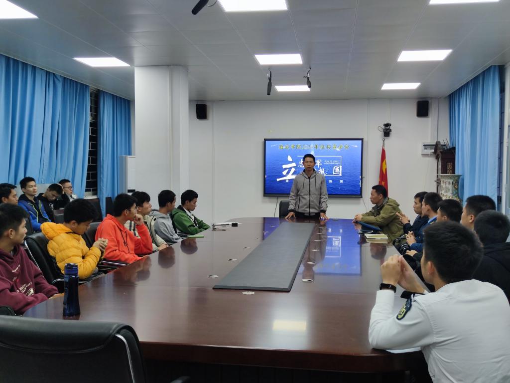《关于做好我校2021年大学生征兵宣传工作的通知》,做好2021年春季征兵工作。12月17日晚,学院组织召开2021年征兵宣讲会,共有40多位有应征入伍意愿的同学参加,会议由副大队长江涛主持。通过宣讲,同学们了解了相关政策要求,大家踊跃报名,立志参军报国。