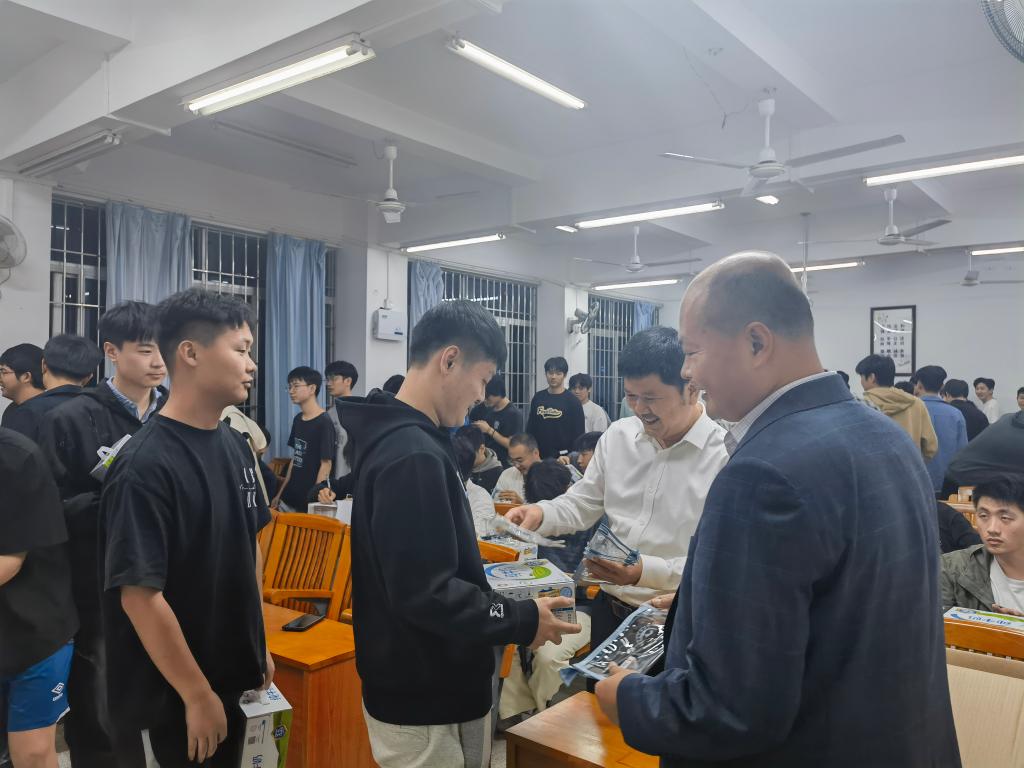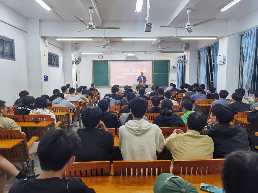 首先,贾宝柱代表学院向考研同学表达了最真挚的祝福,鼓励同学们合理规划时间和进度,注重劳逸结合,保持良好心态,以昂扬的斗志迎接考试。随后,贾宝柱、齐昊、袁剑平等学院领导为同学们送上慰问品。最后,袁剑平为同学们做考前辅导,并分享了考研经验与考研技巧。