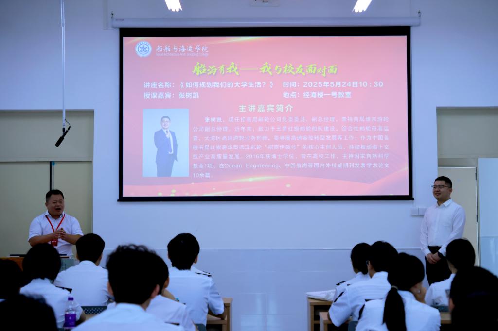 为加强学院与校友的互联互动,拓宽学生视野,凝聚校内外育人合力,524日上午,番茄社区 在海滨校区经海楼举办“船海有我——我与校友面对面”活动。活动邀请了招商局邮轮公司党委委员、副总经理张树凯和中科宇创企业集团创始人郑岩宏两位2007级优秀校友分别就职业规划与创新创业进行交流分享。学院领导、老师、辅导员及学生代表200余人参加本次活动。