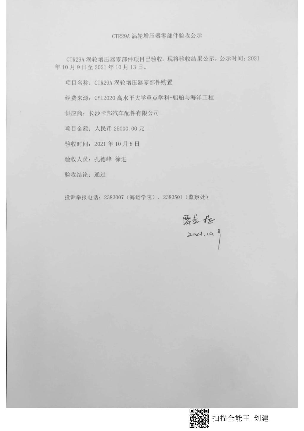铸铁平台和CTR29A涡轮增压器零部件验收公示