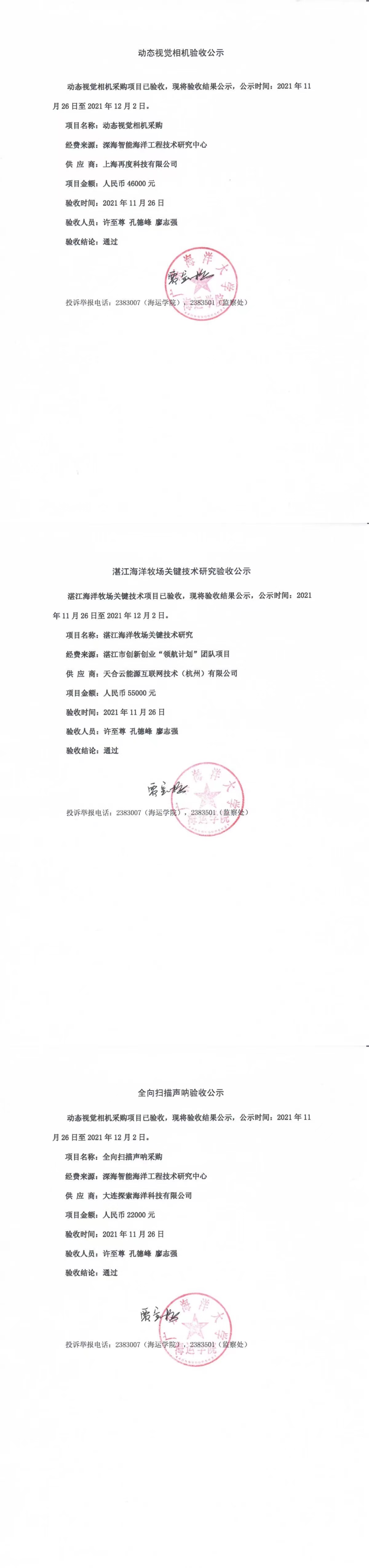 关于动态视觉相机、湛江海洋牧场以及全向扫描声呐的验收公示