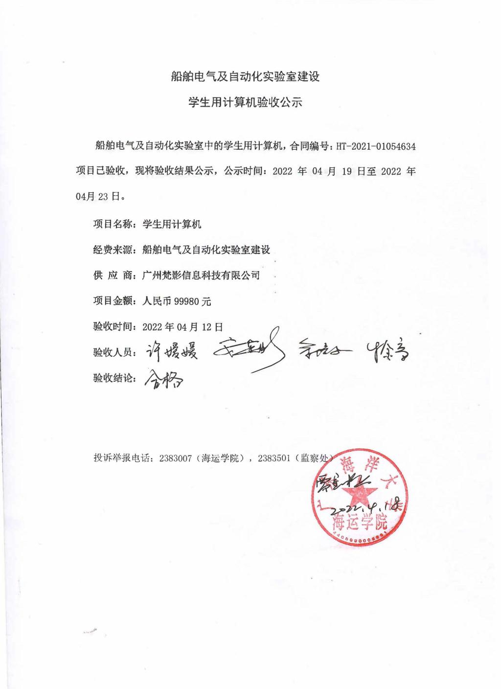 船舶电气及自动化实验室建设项目学生用计算机验收公示