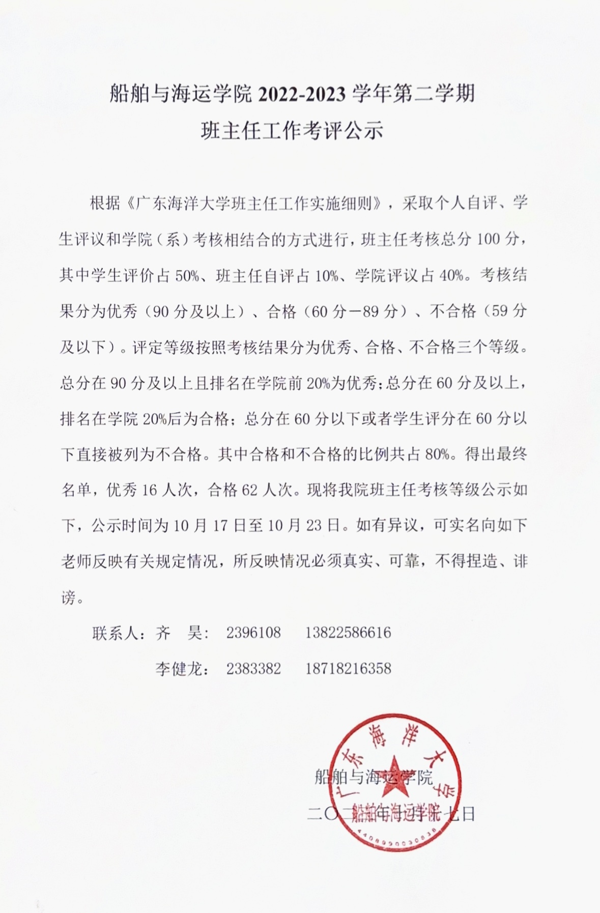 番茄社区 2022-2023学年第二学期班主任工作考评公示