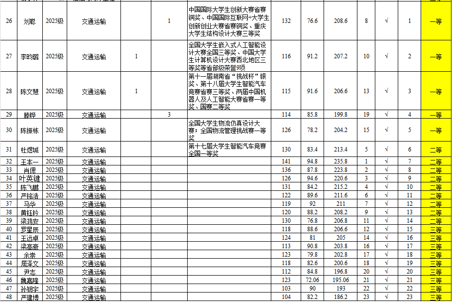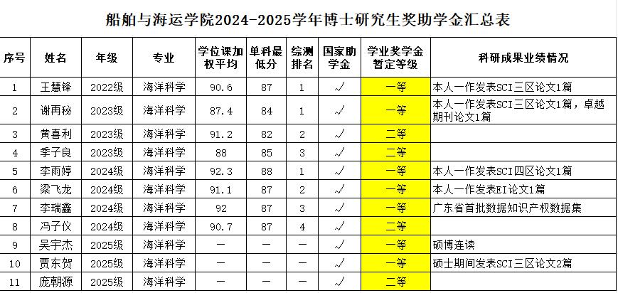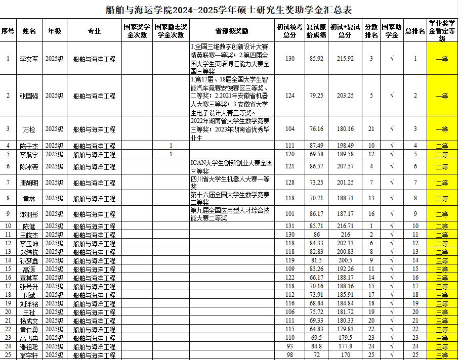 全日制研究生奖助学金实施办法》(校研究生〔2021〕34号)执行,经个人申请、班级复审、学院评审小组认真审核及严格评选,拟确定获得研究生助学金、学业奖学金人员名单。其中,2023级交通运输专业吴浪涛同学因休学,其奖助学金待复学后予以补发。现将评审结果进行公示(详见附表)。