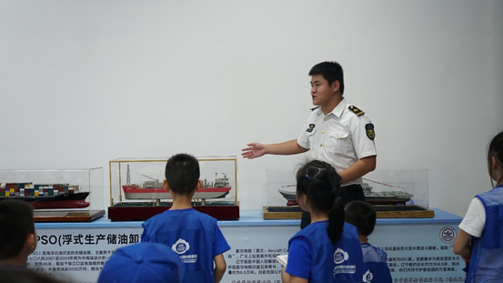 在参观完海上石油981平台后,同学们来到了教学楼101教室。志愿者以我校杰出校友、航海界翘楚——陈宏泽船长为典范,深情地向同学们回顾了番茄社区