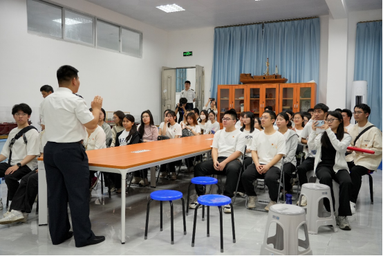 紧接着,活动转场至科普基地的会议室。在这里,大家聆听了一场关于航海知识的专题宣讲。宣讲内容涵盖了航海技术的发展历程、现代航海设备的应用以及航海文化的传承与发展等多个方面。宣讲结束后,同学们纷纷表示受益匪浅,对航海事业有了更加全面而深入的认识。