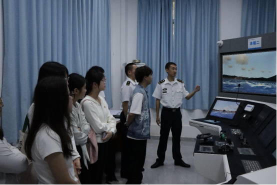 活动的最后一站是航海驾驶模拟器。在这里,同学们有机会亲身体验航海驾驶的乐趣。在专业人员的指导下,他们逐一进入模拟器内部,模拟驾驶船舶在海上航行。通过这一环节,同学们不仅掌握了基本的航海驾驶技能,也对祖国的航海科技发展感到骄傲与自豪。