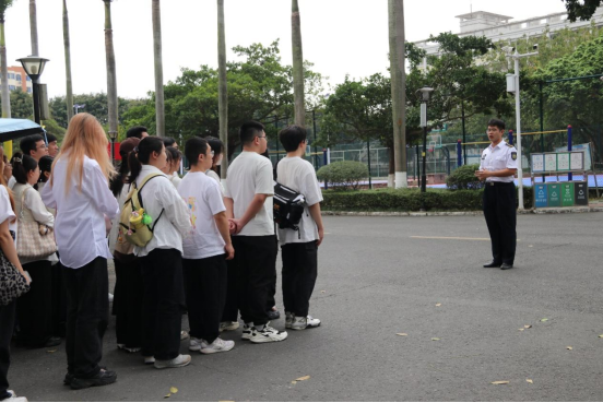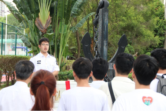 的标志性雕塑——船锚雕塑处。在这里,基地的讲解员为大家详细介绍了船锚的历史、结构及其在航海中的重要作用。同学们认真聆听,不时提出疑问,现场气氛热烈而有序。