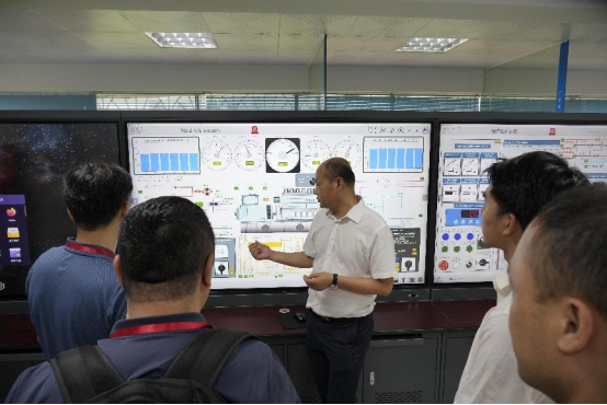 在轮机模拟实验室,贾院长逐一介绍了模拟设备的功能及应用场景,从轮机系统仿真运行到故障诊断实训,全方位展示了学院在实践教学中的创新举措。